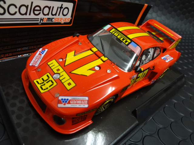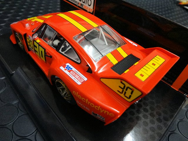 Scaleauto1/32 スロットカー ポルシェ935/J です。1980年のデイトナ24時間レース出場車のMOMO ポルシェ935/77、このフェンダー、このウィングたまりませんね!ワイルドなスタイルが最大の魅力です。